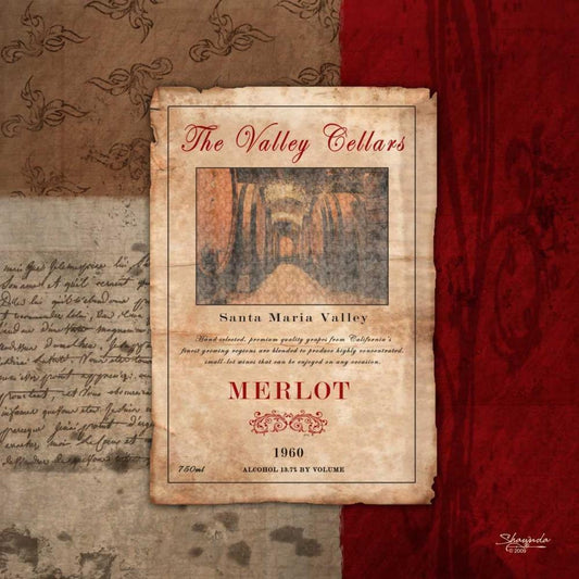 Merlot Wine Label Black Modern Wood Framed Art Print by Eva, Shawnda