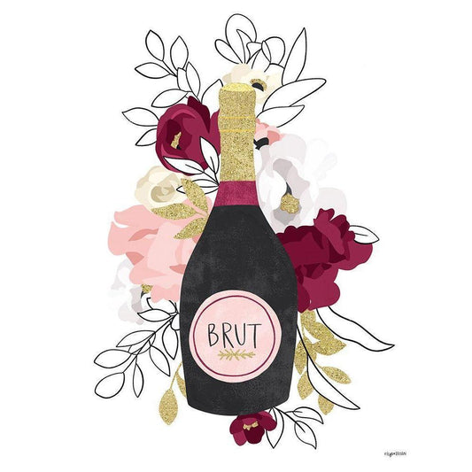 Champagne Floral Black Modern Wood Framed Art Print by Brown, Kyra
