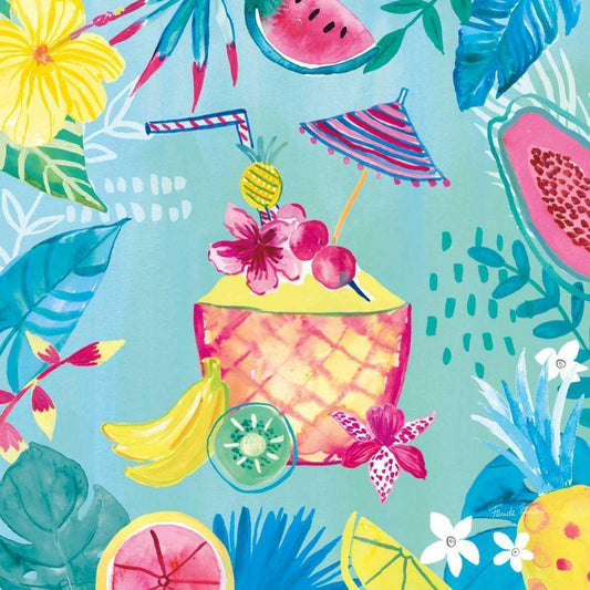 Fruity Flamingos VII Black Modern Wood Framed Art Print by Zaman, Farida