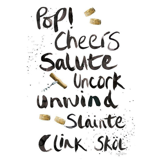 Pop the Cork I Black Modern Wood Framed Art Print by Charro, Mercedes Lopez