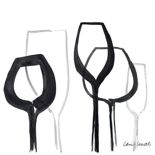 Wine Party Square II Black Modern Wood Framed Art Print by Loreth, Lanie