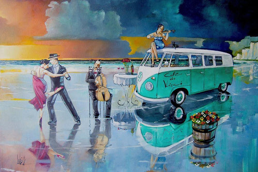 Tea Break On The Jetty White Modern Wood Framed Art Print with Double Matting by West, Ronald