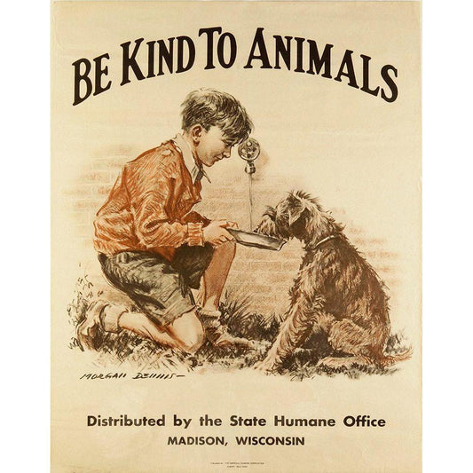 Be Kind to Animals Black Modern Wood Framed Art Print by Vintage Apple Collection