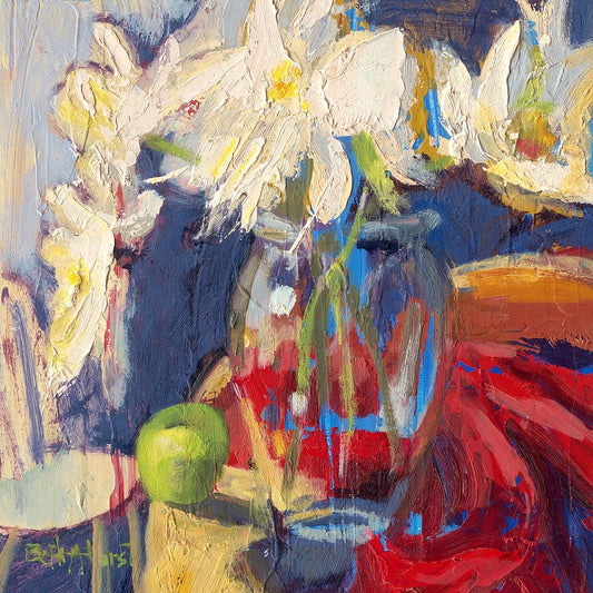 White Peonies Black Ornate Wood Framed Art Print with Double Matting by Forst, Beth A.