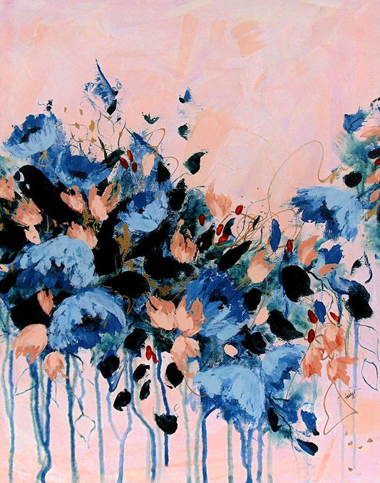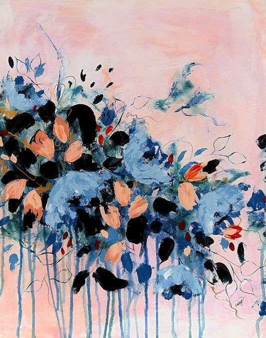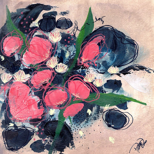 Grow - Pink Promises Black Ornate Wood Framed Art Print with Double Matting by DelValle, Patty