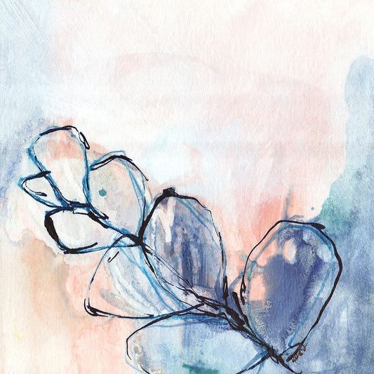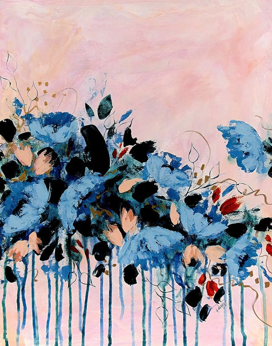 Blue Flowers Black Ornate Wood Framed Art Print with Double Matting by Derman, Dawn