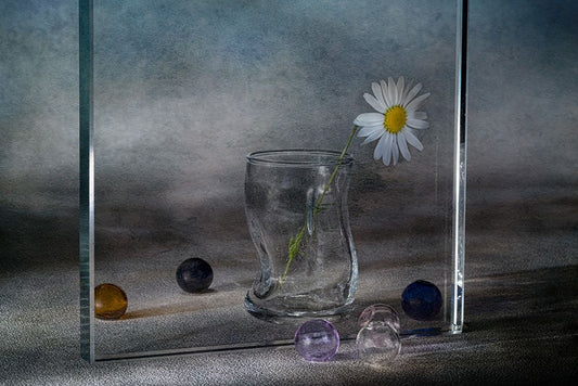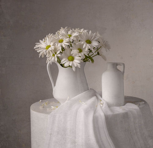Daisy White Modern Wood Framed Art Print with Double Matting by Perfoncio, Margareth