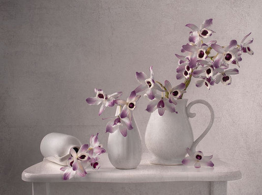 Lilac Orchid White Modern Wood Framed Art Print with Double Matting by Perfoncio, Margareth