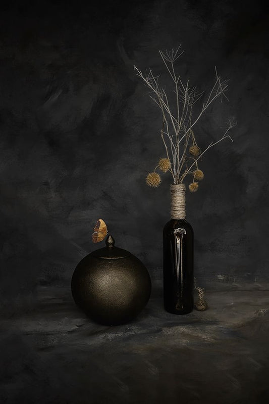 Still life with dandelion White Modern Wood Framed Art Print with Double Matting by Hrabinsky, Peter