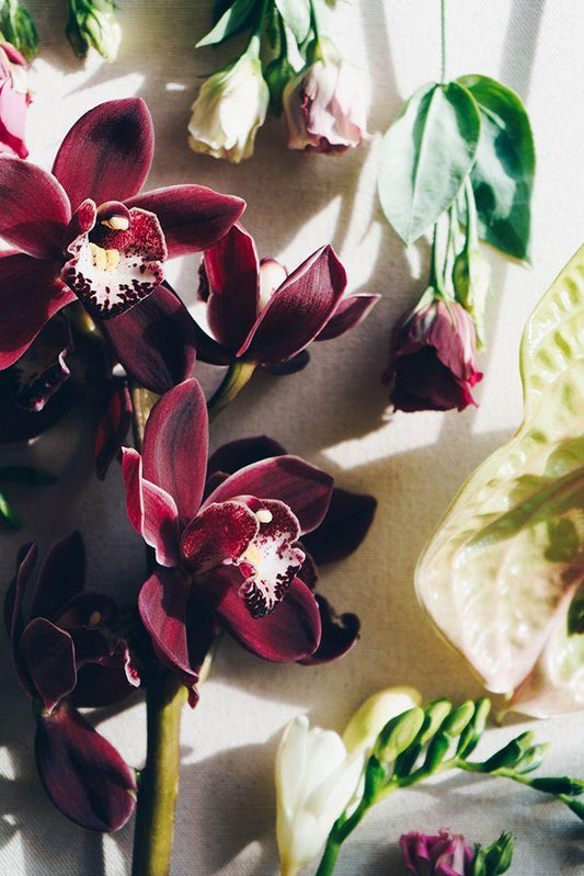 Red Cymbidium Orchid White Modern Wood Framed Art Print with Double Matting by Sawall, Anastasia