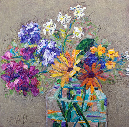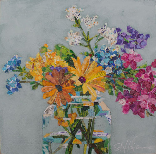 Mixed Floral White Modern Wood Framed Art Print with Double Matting by St Hilaire, Elizabeth