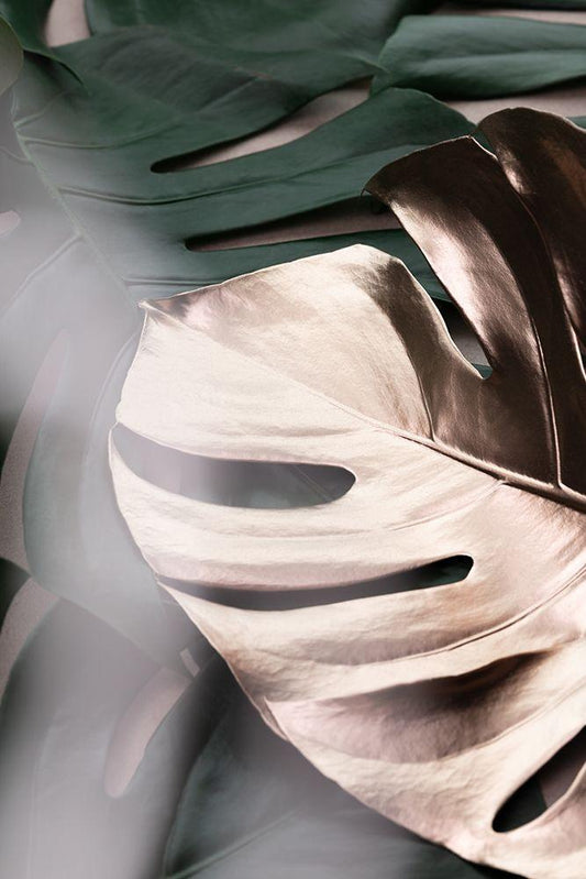 Monstera Gold 02 White Modern Wood Framed Art Print with Double Matting by 1x Studio III
