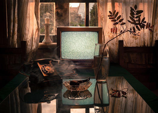 At Table White Modern Wood Framed Art Print with Double Matting by Cherkasov, Viktor