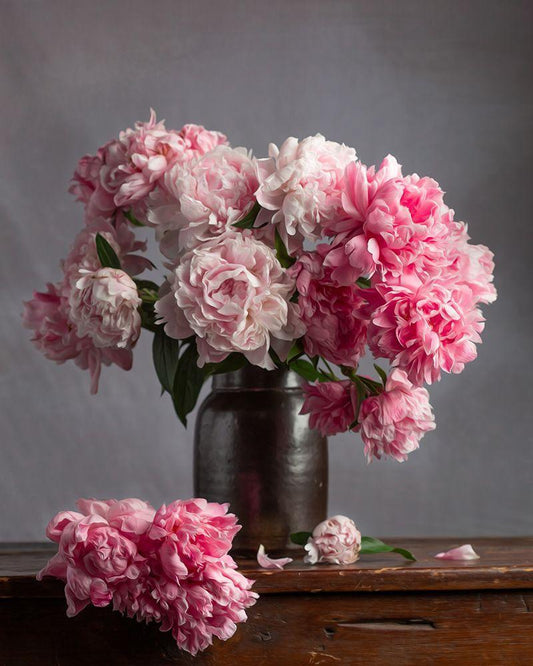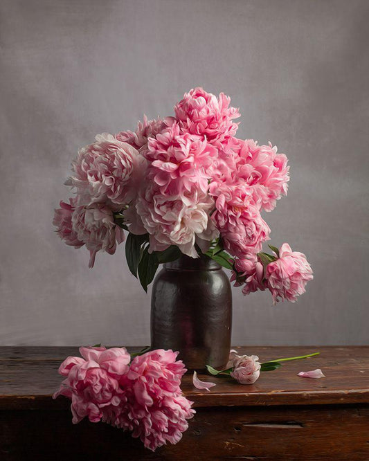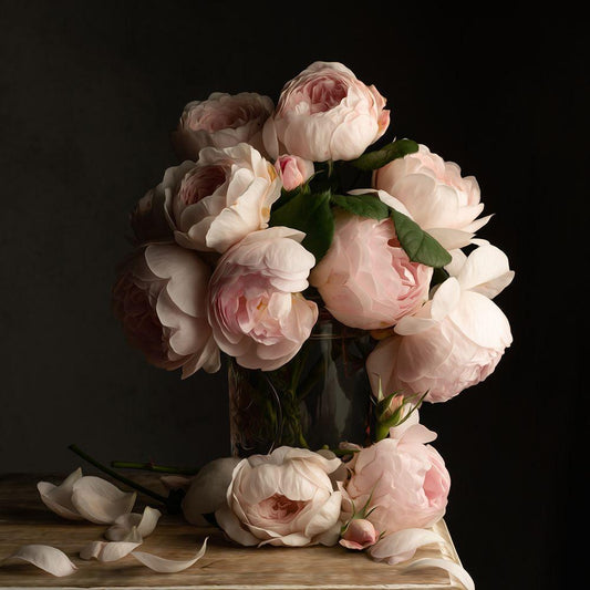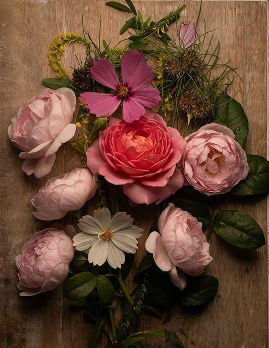 Rose and Peony Dark Duet White Modern Wood Framed Art Print with Double Matting by Maclean, Leah