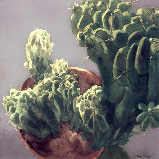 Cactus White Modern Wood Framed Art Print with Double Matting by Wang, John