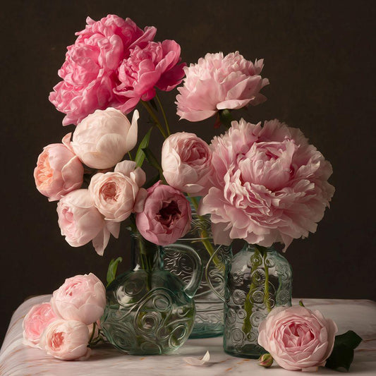 Rose and Peony Duet White Modern Wood Framed Art Print with Double Matting by Maclean, Leah