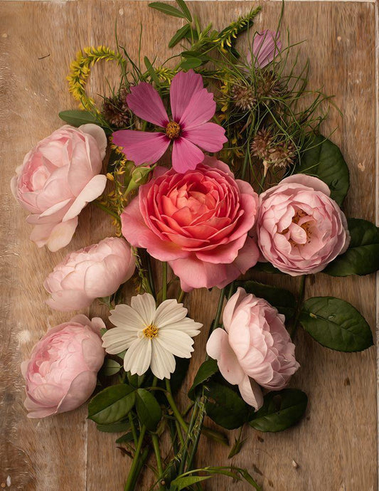 A Pocket Full of Posies White Modern Wood Framed Art Print with Double Matting by Maclean, Leah