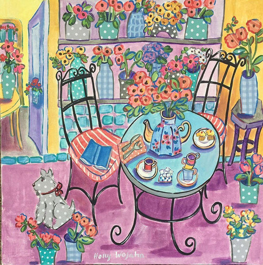 A Flowery Café White Modern Wood Framed Art Print with Double Matting by Wojahn, Holly