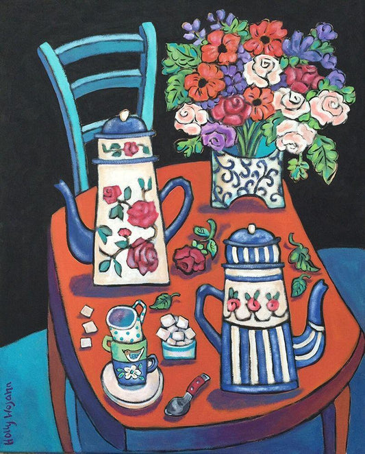 A Happy Blue Table White Modern Wood Framed Art Print with Double Matting by Wojahn, Holly