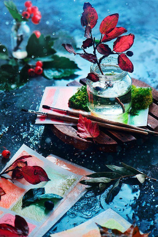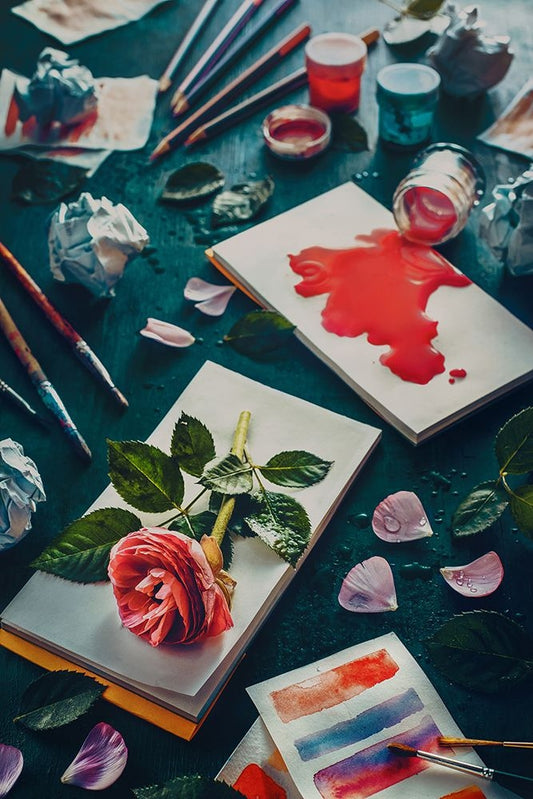 Painting Flowers: Stains And Sketches White Modern Wood Framed Art Print with Double Matting by Belenko, Dina