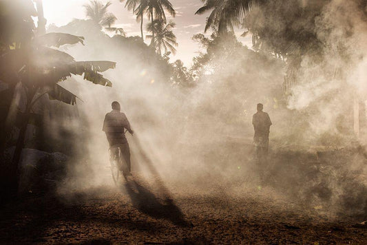Bike In Fog White Modern Wood Framed Art Print with Double Matting by Mirica, Dan