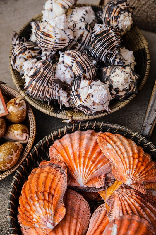 Arizona- USA. Seashells in woven baskets White Modern Wood Framed Art Print with Double Matting by Sienda, Jolly