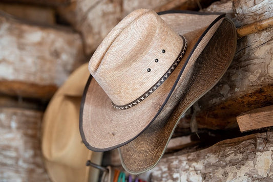 USA-Colorado-Westcliffe Music Meadows Ranch Tack room-cowboy hat detail White Modern Wood Framed Art Print with Double Matting by Hopkins, Cindy Miller