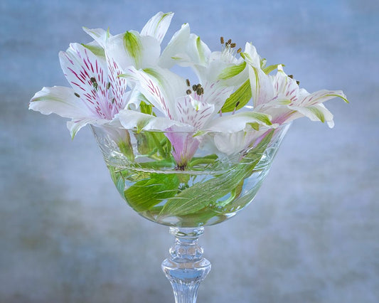 USA-Washington State-Seabeck Alstroemeria blossoms in vase White Modern Wood Framed Art Print with Double Matting by Jaynes Gallery