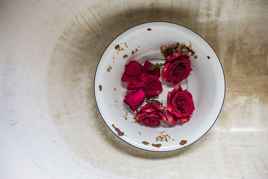 Canary Islands-Tenerife Island-La Orotava-roses in antique dish White Modern Wood Framed Art Print with Double Matting by Bibikow, Walter