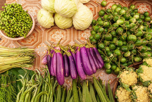 Food at market-Vientiane-Capital of Laos-Southeast Asia White Modern Wood Framed Art Print with Double Matting by Haseltine, Tom