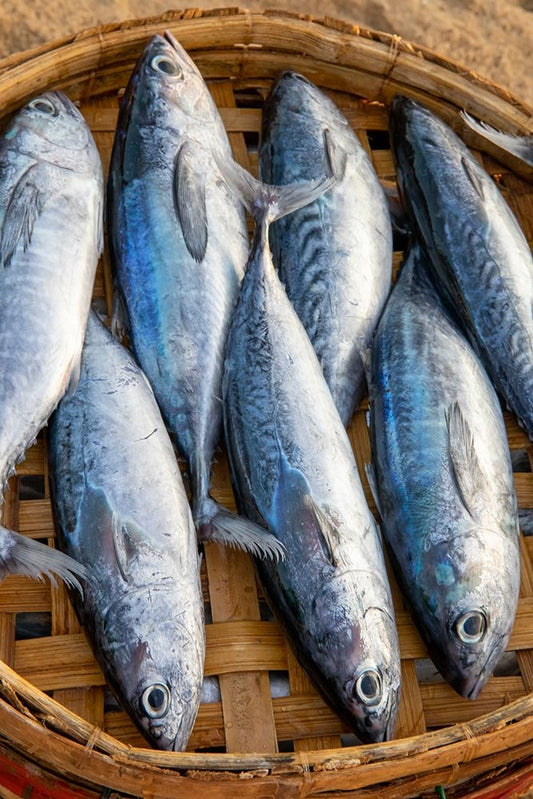 Vietnam-Mackerels from the nights catch on the beach at Hoi An White Modern Wood Framed Art Print with Double Matting by Norring, Tom