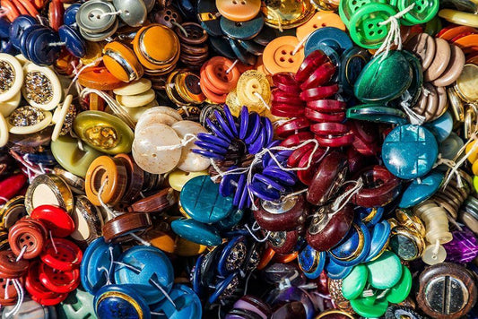 Italy-Apulia-Metropolitan City of Bari-Locorotondo Buttons for sale in an outdoor market White Modern Wood Framed Art Print with Double Matting by Wilson, Emily