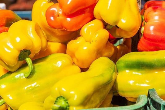 Italy-Apulia-Metropolitan City of Bari-Locorotondo Peppers for sale in an outdoor market White Modern Wood Framed Art Print with Double Matting by Wilson, Emily