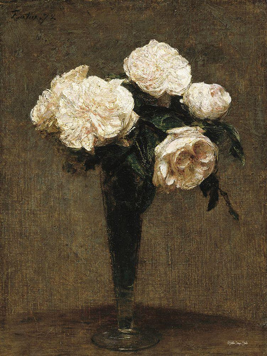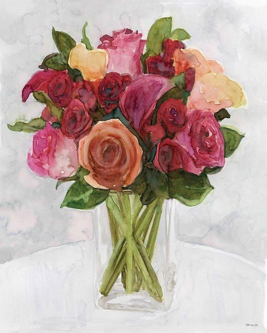 Bouquet in Urn 1 White Modern Wood Framed Art Print with Double Matting by Stellar Design Studio
