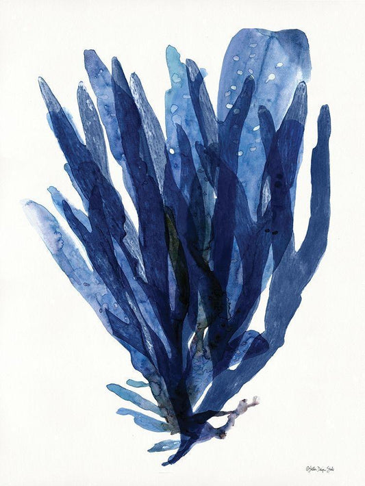 Transparent Indigo Sea Grass II White Modern Wood Framed Art Print with Double Matting by Stellar Design Studio