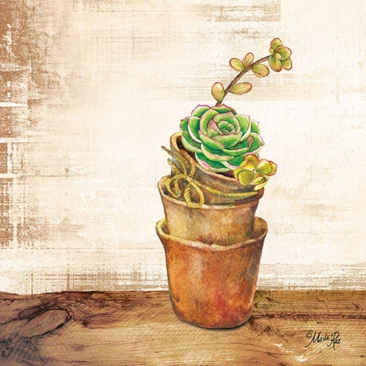 Succulents in a Pot White Modern Wood Framed Art Print with Double Matting by Rae, Marla