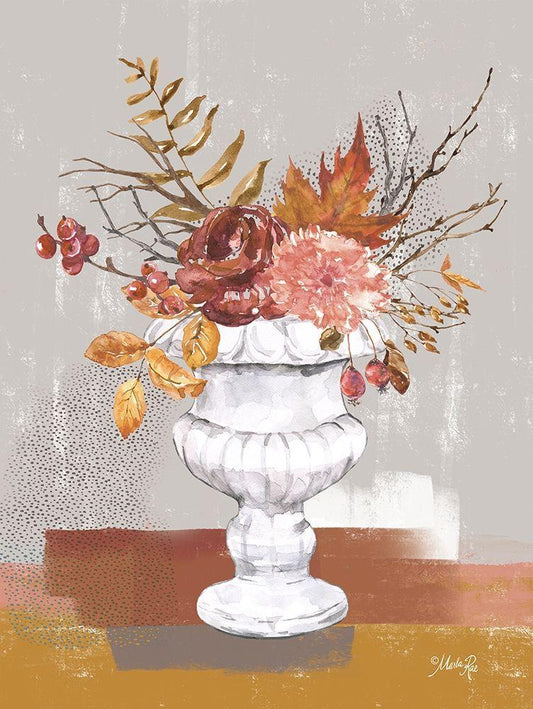 Fall Floral I White Modern Wood Framed Art Print with Double Matting by Rae, Marla