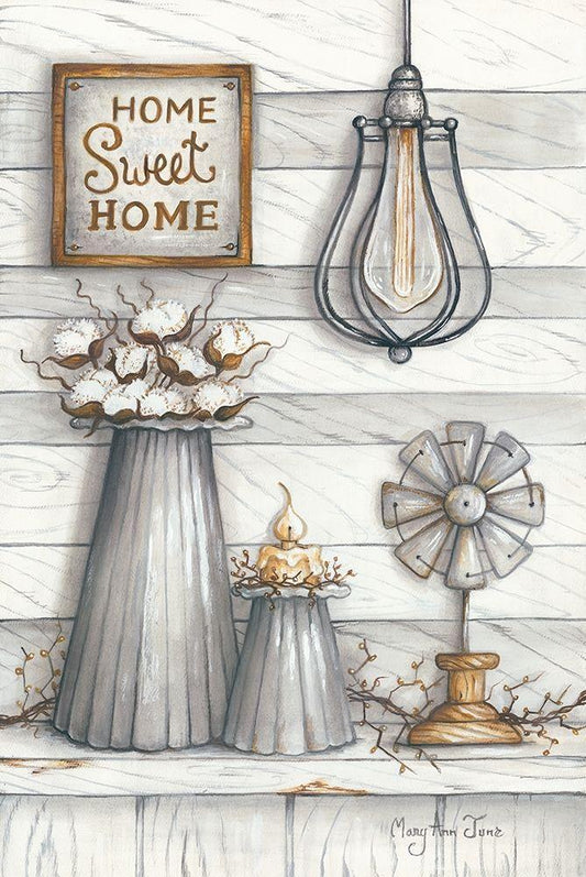 Home Sweet Home White Modern Wood Framed Art Print with Double Matting by June, Mary Ann