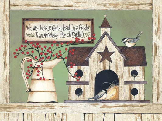 Birds and Berries White Modern Wood Framed Art Print with Double Matting by Spivey, Linda