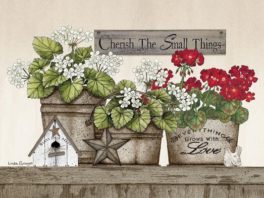 Cherish the Small Things Geraniums White Modern Wood Framed Art Print with Double Matting by Spivey, Linda