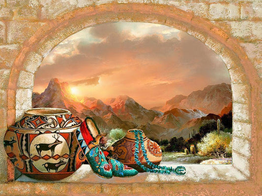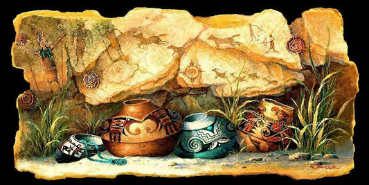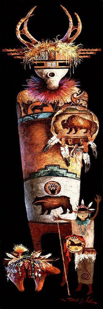 Indian Story I White Modern Wood Framed Art Print with Double Matting by Lee, James