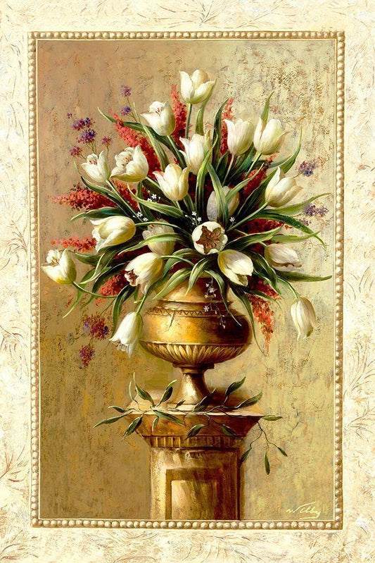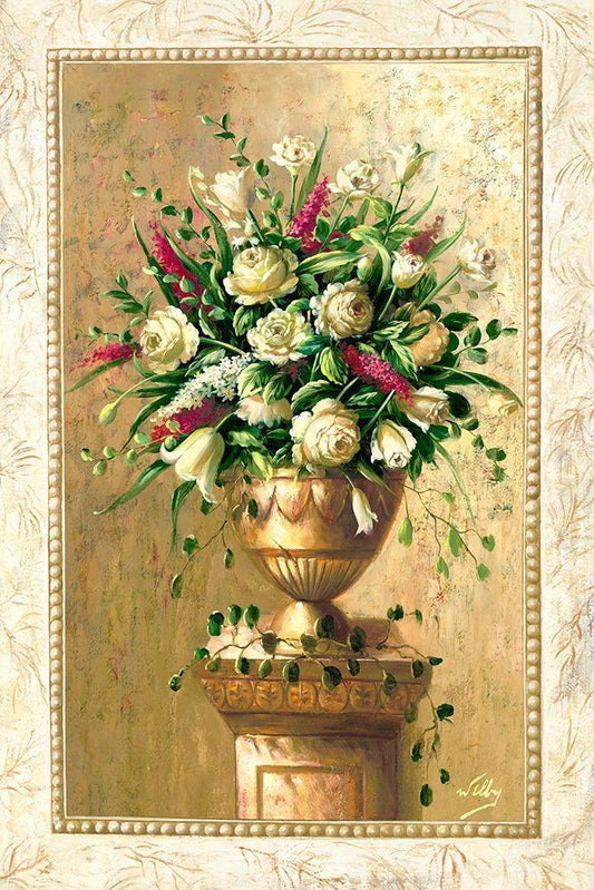 Roses in a Glass Vase White Modern Wood Framed Art Print with Double Matting by Alpenglow Workshop