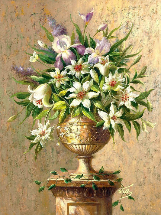 Lilacs in Glass Vase White Modern Wood Framed Art Print with Double Matting by Alpenglow Workshop