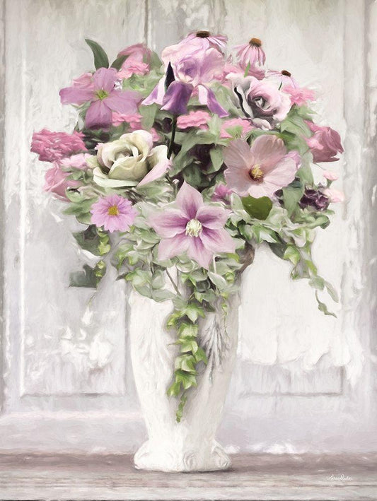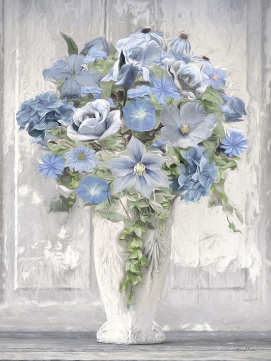 Blue Floral Bouquet White Modern Wood Framed Art Print with Double Matting by Deiter, Lori