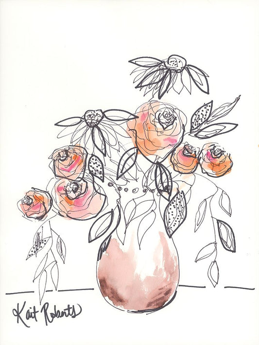 Poppies in Vase White Modern Wood Framed Art Print with Double Matting by Sherrill, Kate