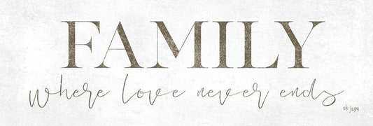 Family Where Love Never Ends White Modern Wood Framed Art Print with Double Matting by Jaxn Blvd.