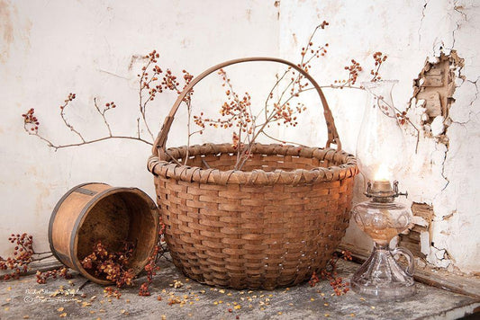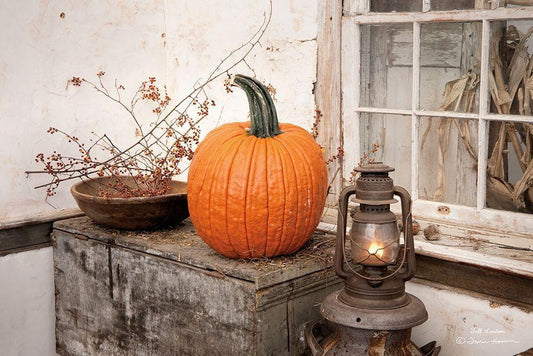 Fall Lantern White Modern Wood Framed Art Print with Double Matting by Hoover, Irvin
