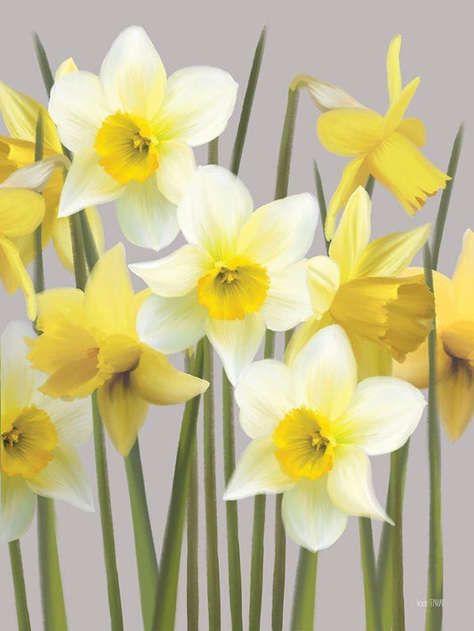 Spring Daffodils White Modern Wood Framed Art Print with Double Matting by House Fenway