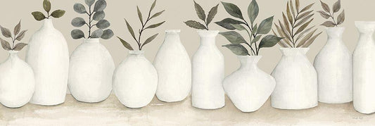 Ivory Vases in a Row White Modern Wood Framed Art Print with Double Matting by Jacobs, Cindy
