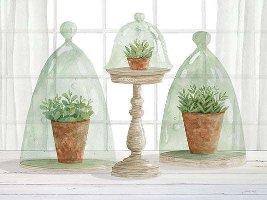 Garden Cloche Trio I White Modern Wood Framed Art Print with Double Matting by Jacobs, Cindy